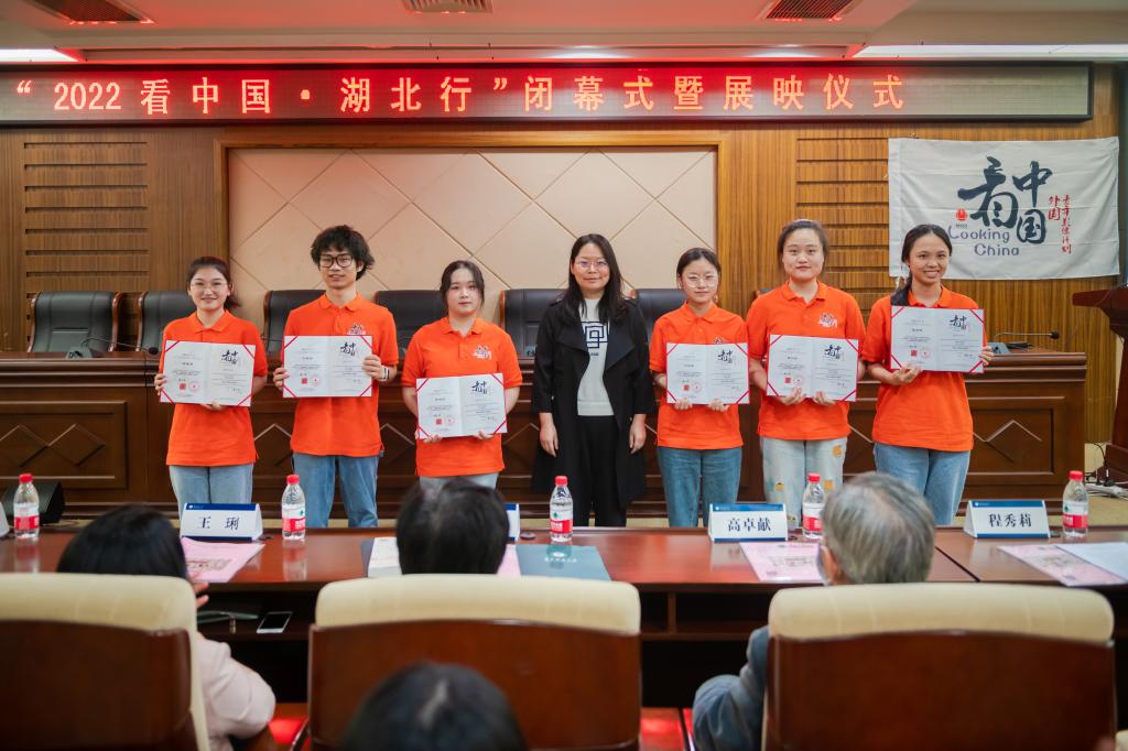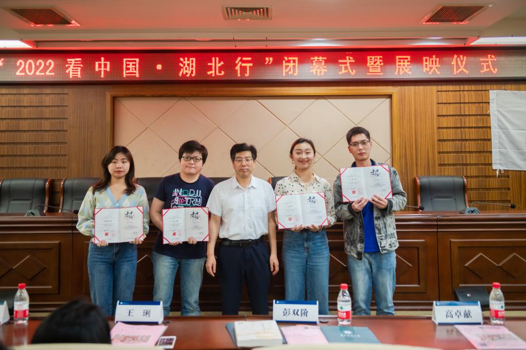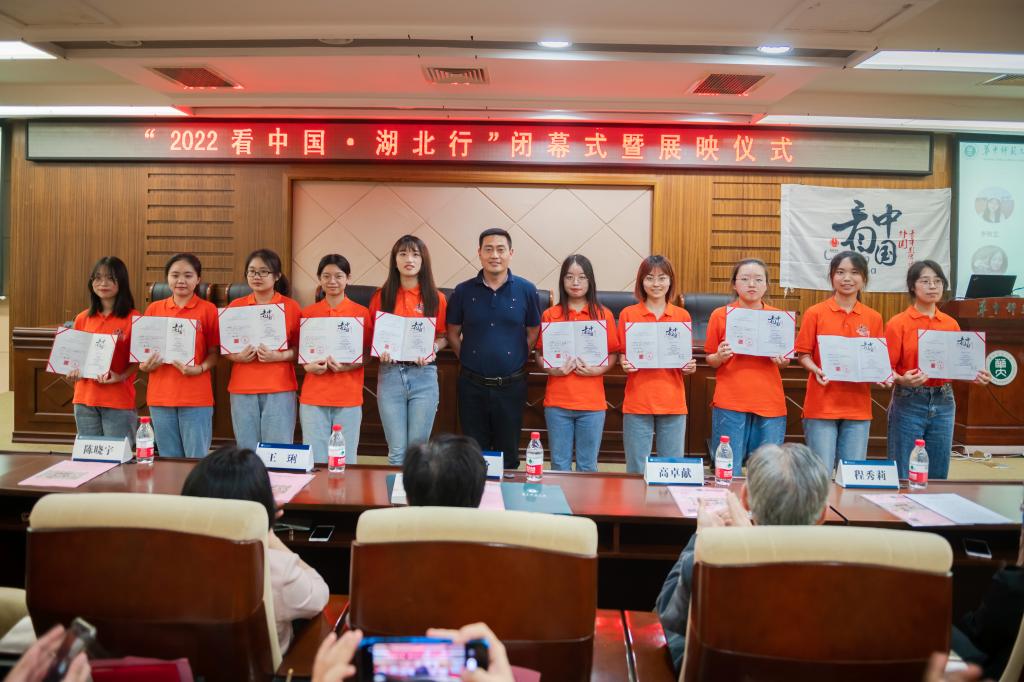 仪式上,参会嘉宾为参与“2022看中国-外国青年影像计划·湖北行”的指导教师及中外学生颁发纪念证书,共同欣赏他们精心拍摄的作品。