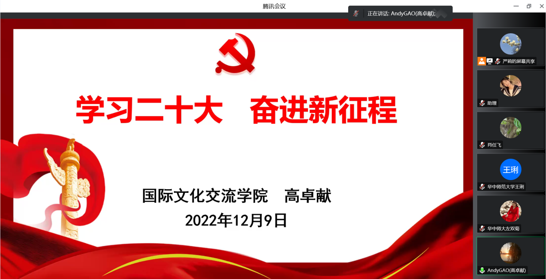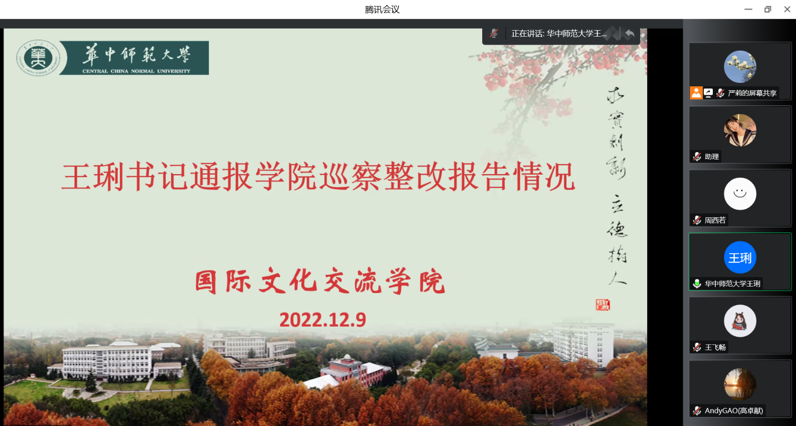 12月9日下午,国际文化交流学院通过腾讯会议召开2022年第11次教职工大会。学院全体教职工线上参会,会议由学院党总支书记王琍主持。