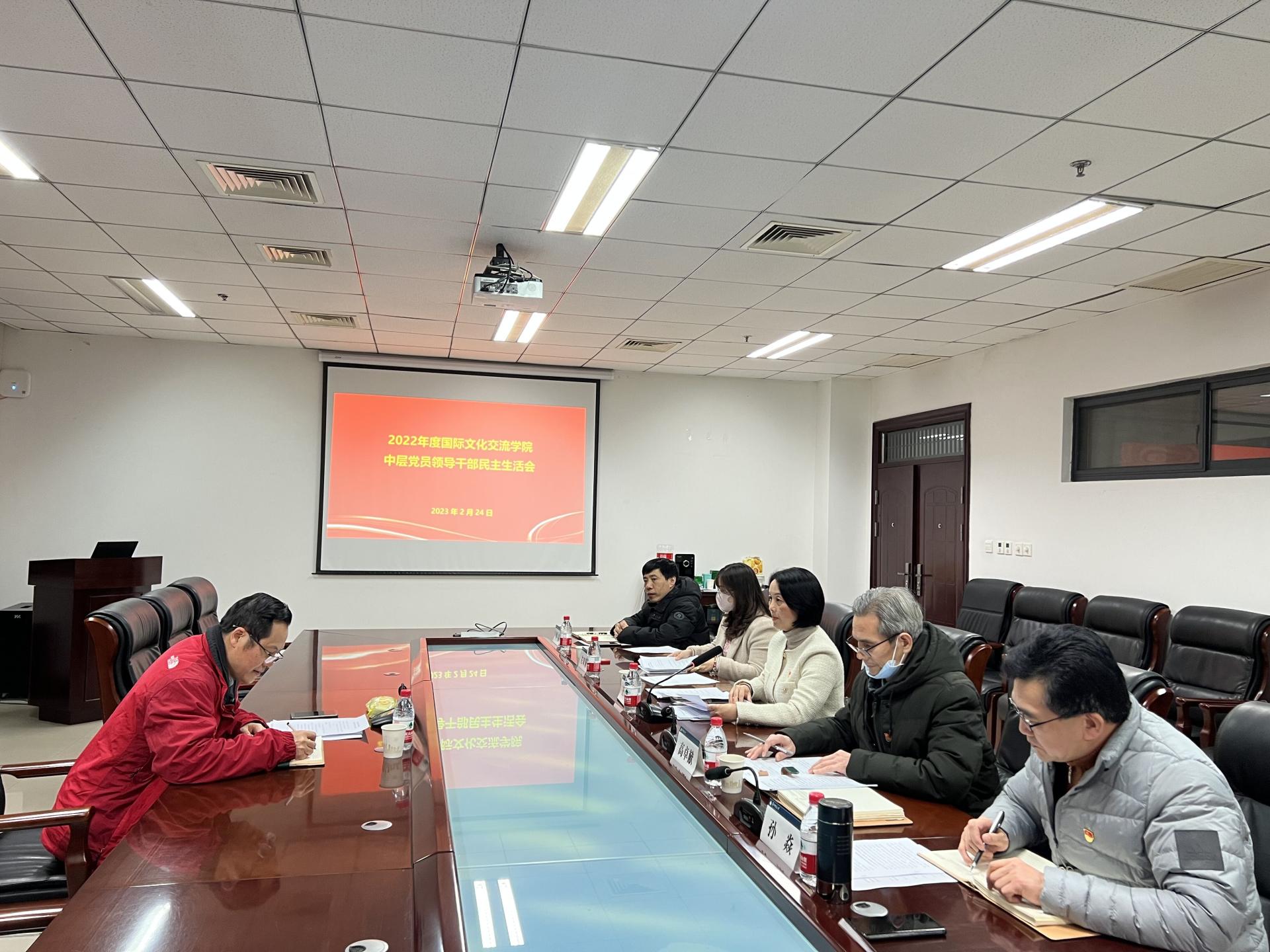 2023年2月24日晚,国际文化交流学院2022年度中层党员领导干部民主生活会在310会议室召开,学校督导组成员党委学生工作部副部长杨军到会督导,会议由党总支书记王琍主持。