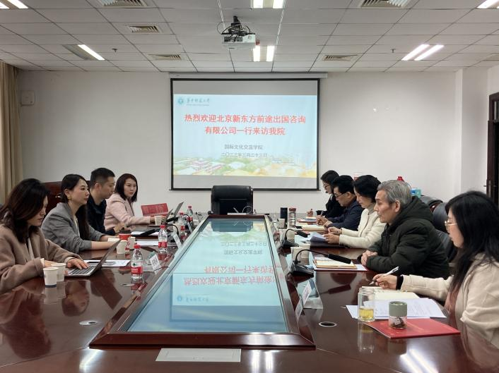 王琍书记在讲话中强调,应加强我校国际教育课程建设,完善和开发长短期项目,充分发挥中文国际教育优势,将传统文化的推广与现代科技的应用相结合,借助新东方前途出国的资源和平台,打造特色“留学华师”品牌,画好国际友人眼中华师画像。