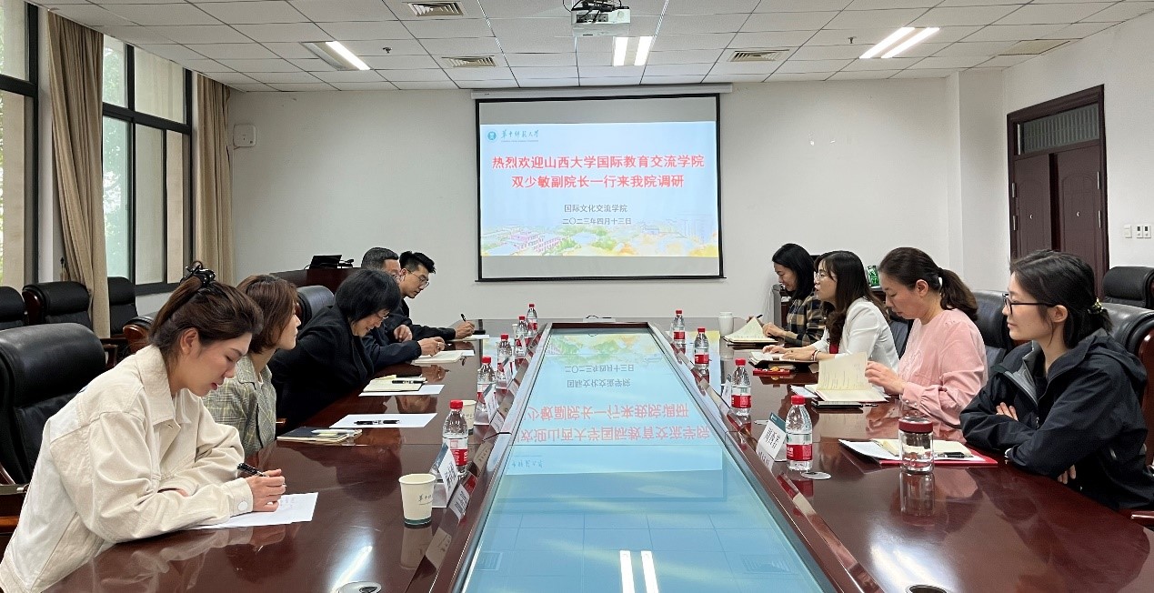 4月13日下午,山西大学国际教育交流学院副院长双少敏一行来访交流座谈会在310会议室举行。我院左双菊副院长、阮蓓老师、教学办游梦佳主任及招办周西若老师参会。