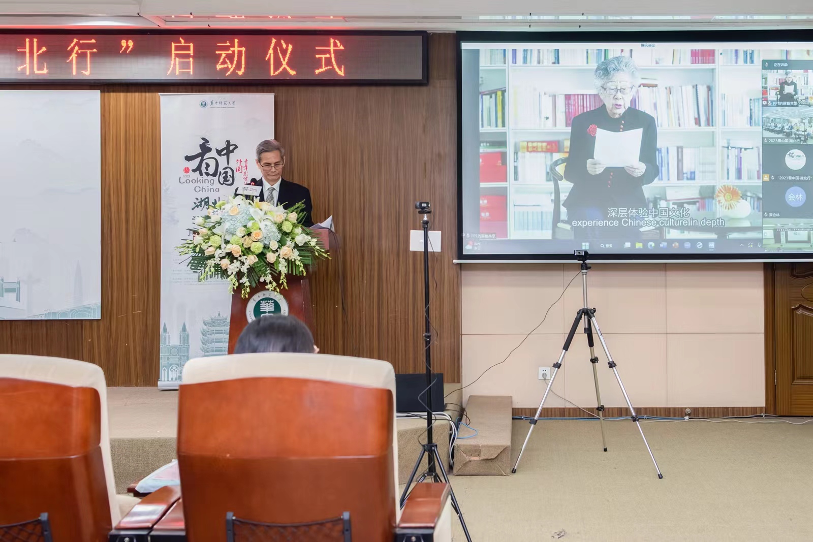 郝芳华校长在致辞中表示,期待中外青年从桂子山再度启航,能够以“民居·民歌·民风”为主题,用脚步丈量湖北大地,用内心感受时代脉搏,领略荆楚文化的独特魅力,挖掘湖北大地的生动故事。