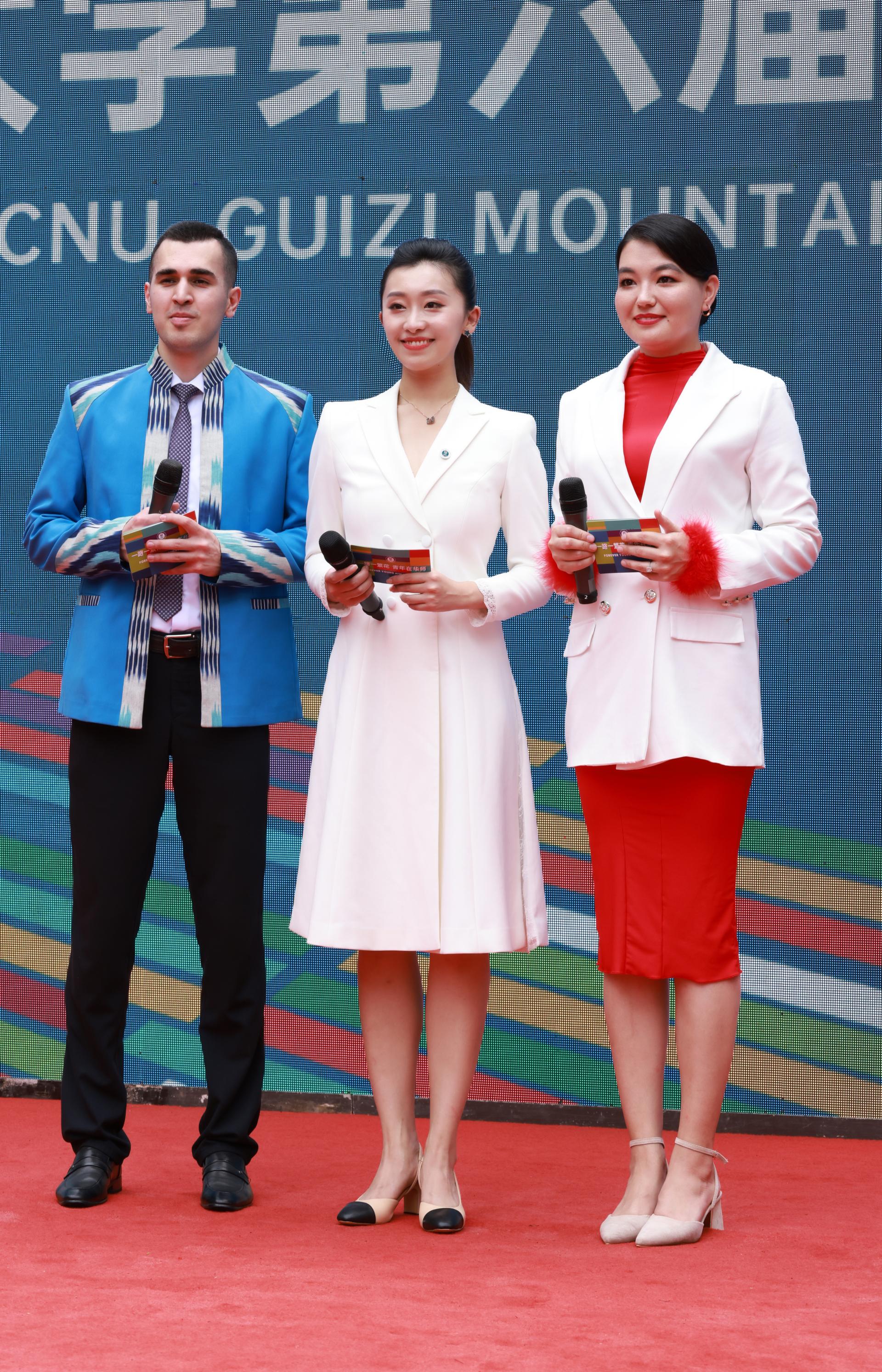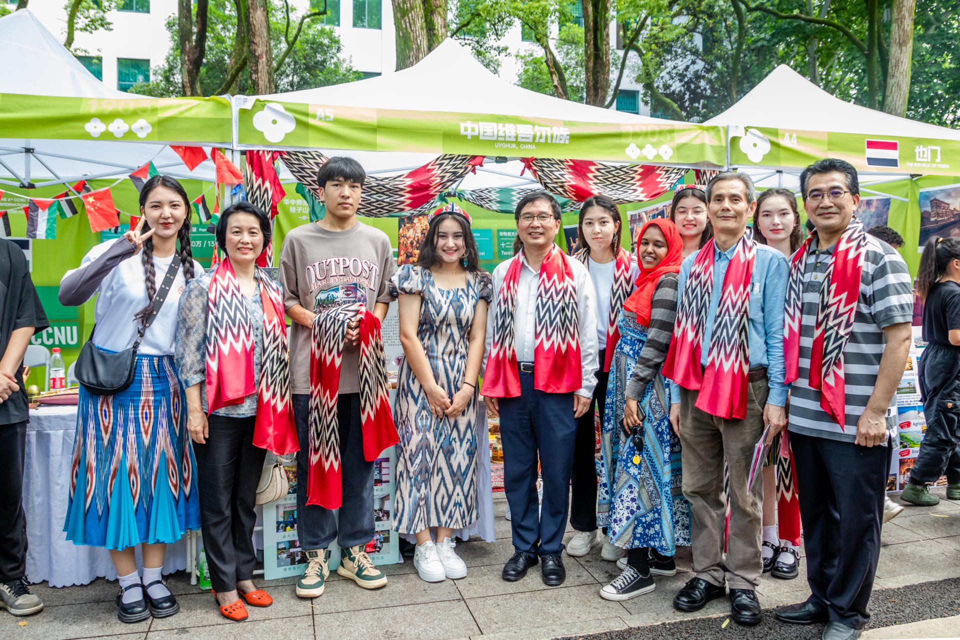 5月27日,华中师范大学第六届桂子山国际文化节在桂中路顺利举行。来自53个国家的国际学生代表、学校民族学生代表以及中国非物质文化遗产手工艺人代表齐聚桂中路,百花齐放共展风采,奏响中外文化交流互鉴之歌。任友洲副校长、各职能部门与学院负责人、在汉兄弟高校国际学生工作同行代表出席文化节开幕式。我院王琍书记、高卓献院长、孙焱副院长、左双菊副院长、全体行政人员以及部分教师代表参加活动。国际学生辅导员丁昱丹、塔吉克斯坦籍本科生萨都剌、土库曼斯坦籍本科生艾莎主持开幕式。