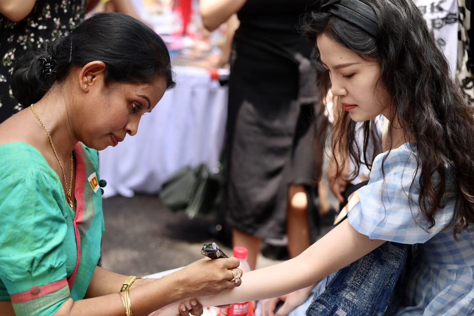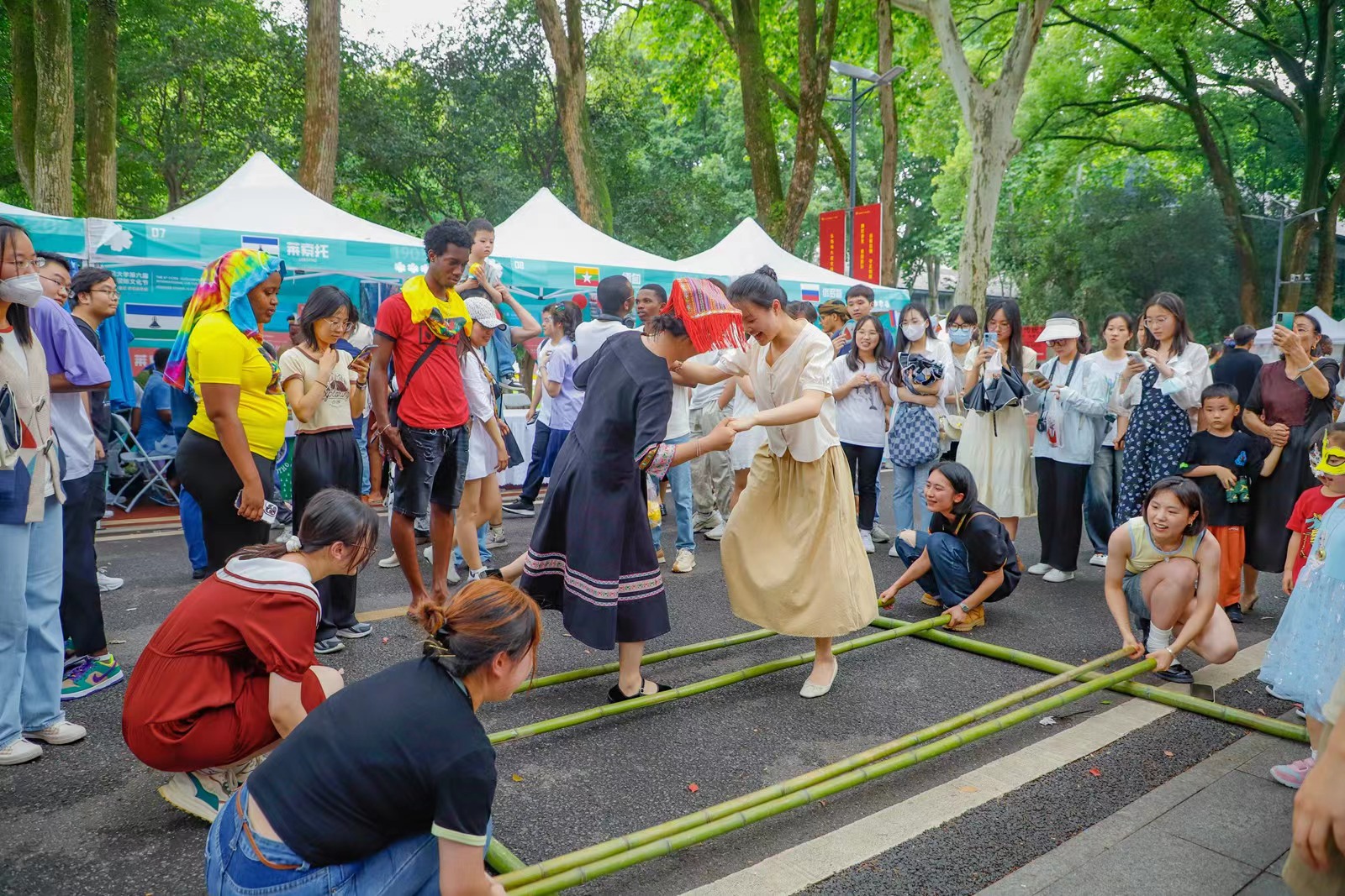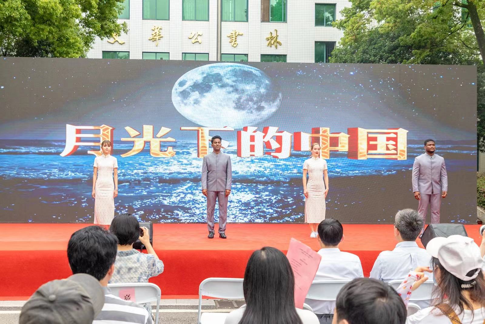 开幕式上,全体师生观看了由印度尼西亚籍学生、俄罗斯籍学生带来的精彩舞蹈,共同见证了“洋雷锋”志愿服务队十周年原创歌曲《Each one help one》MV发布,聆听了阮延俊演奏的古琴曲《流水》及孟加拉国籍硕士研究生阿克那等人的中文诗歌朗诵《月光下的中国》,欣赏了由塞内加尔籍博士研究生郭飞龙等人带来的中华武术表演《武艺龙韵》。活动现场人声鼎沸、热闹非凡,到处洋溢着浓郁的文化气息。