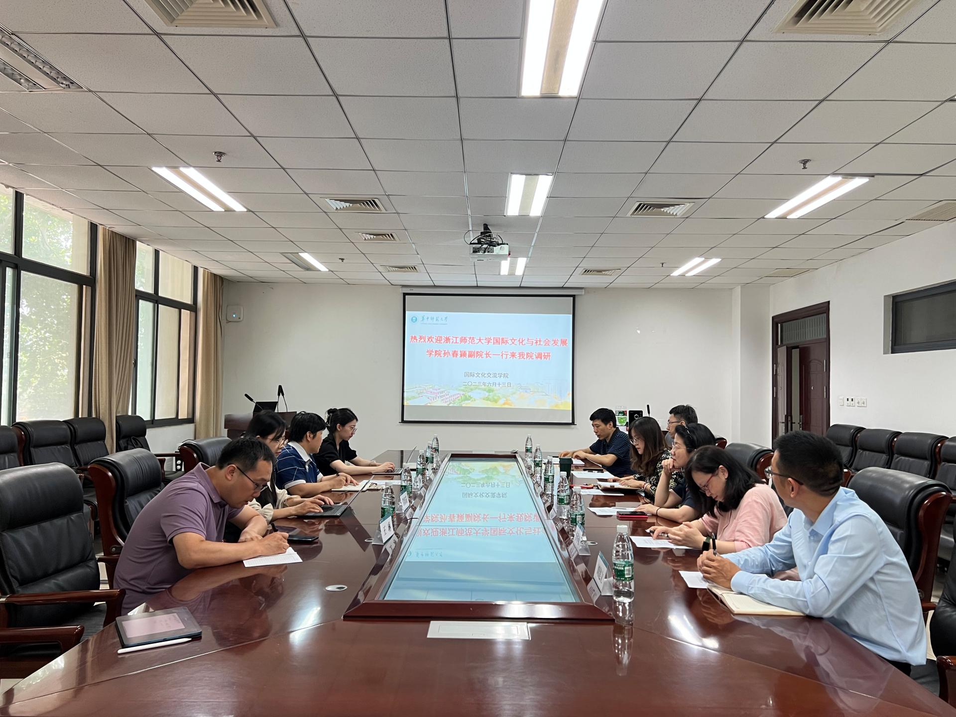6月13日上午,浙江师范大学国际文化与社会发展学院孙春颖副院长一行来我院调研,我院左双菊副院长,肖任飞、李华雍、袁海霞、刘建立等老师和学院办公室李志主任参会。