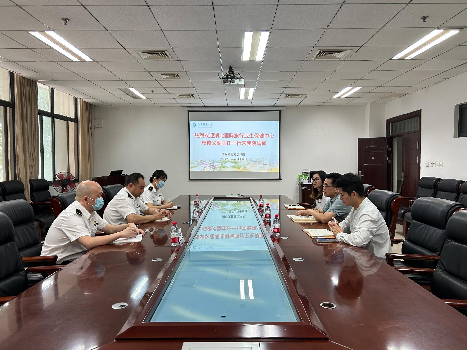 孙焱副院长对杨俊义副主任一行的到来表示热烈欢迎,感谢湖北国际旅行卫生保健中心多年来严把检疫关,为我校国际学生健康入学提供坚强保障。他介绍了我校国际学生的总体情况,并希望保健中心在开展常规身体健康检查基础上,为我校国际学生提供卫生知识讲座、心理健康测评等服务。