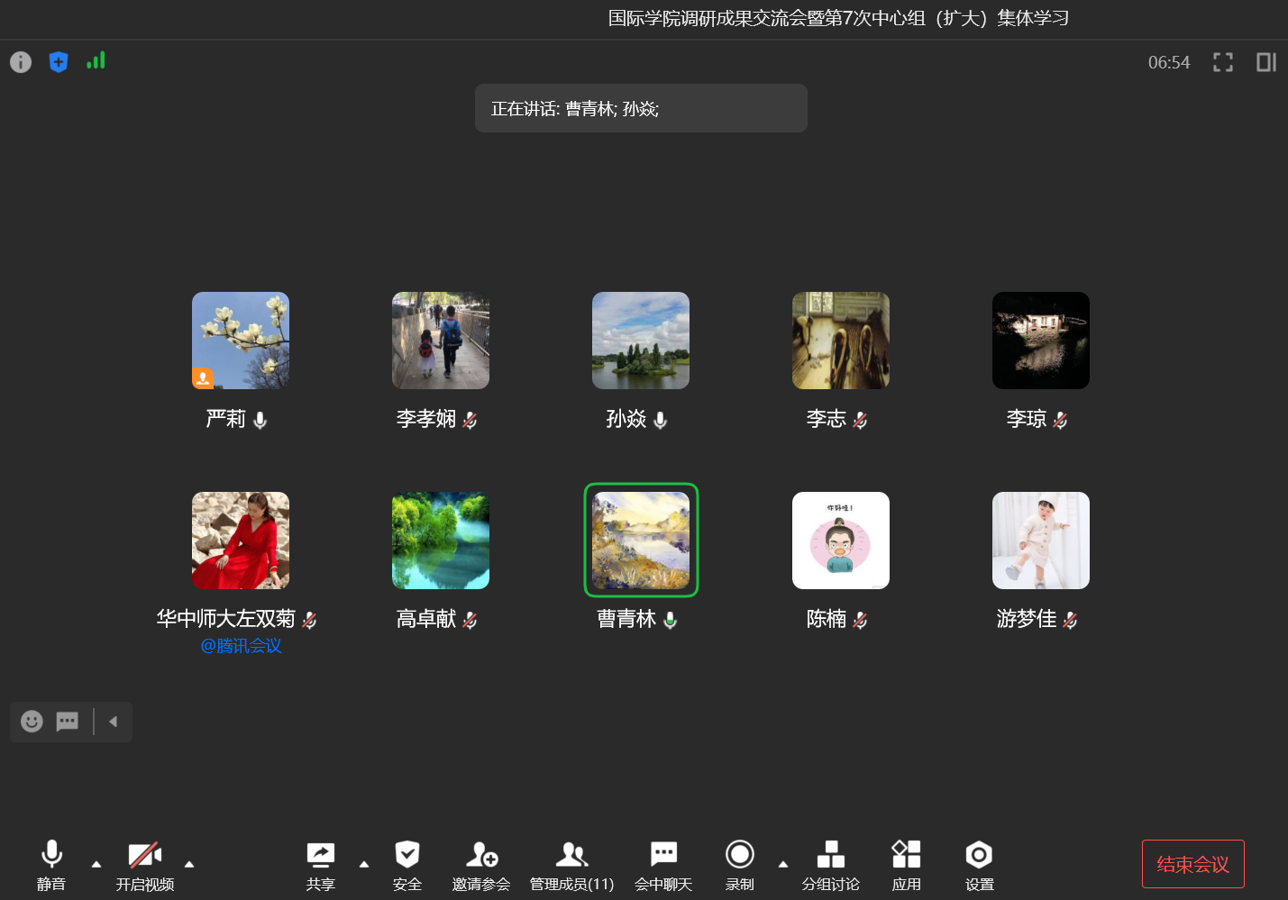 7月27日上午,国际文化交流学院学习贯彻习近平新时代中国特色社会主义思想主题教育领导班子调研成果交流会暨党总支理论学习中心组2023年第7次集体学习通过企业微信线上举行。学院党总支全体成员、左双菊副院长及相关老师参加学习。会议由学院党总支书记曹青林主持。
