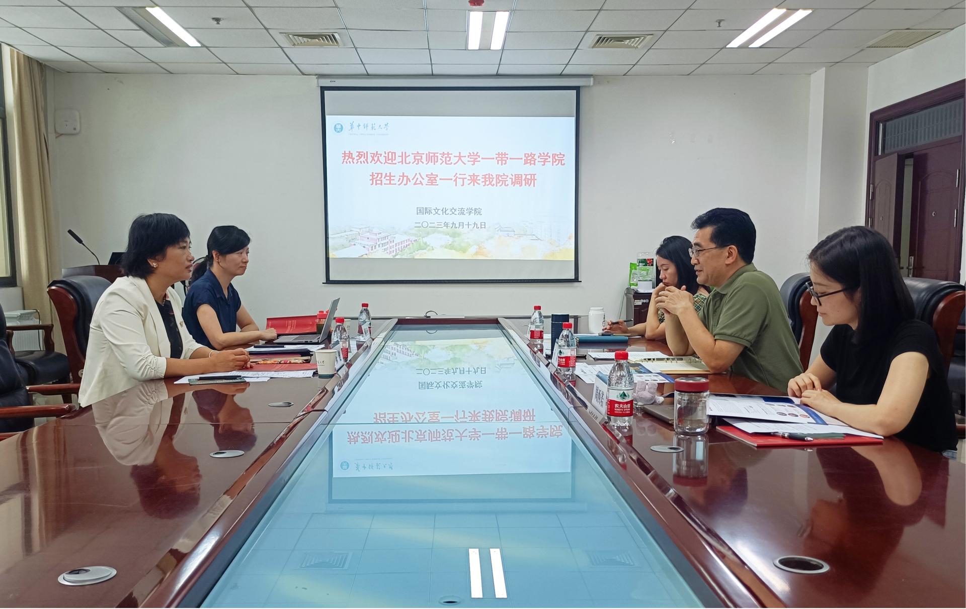 9月19日上午,北京师范大学一带一路学院陈健副主任一行来访调研,我院孙焱副院长、教学办游梦佳主任及招生办公室周西若老师参加座谈会。