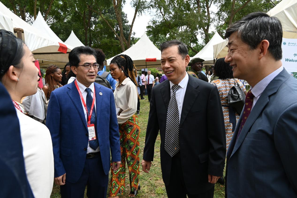 展出当天,前往我校展位的咨询者络绎不绝。我校工作人员向加纳青年与教育界人士介绍了我校的办学特色、优势学科以及国际学生教育等情况,并就我校的专业设置、课程内容、师资情况以及奖学金设置等方面问题给予了耐心解答。中国驻加纳大使卢坤、国家留学基金管理委员会秘书长生建学莅临我校展位指导,对我校的来华留学教育管理工作给予高度肯定。