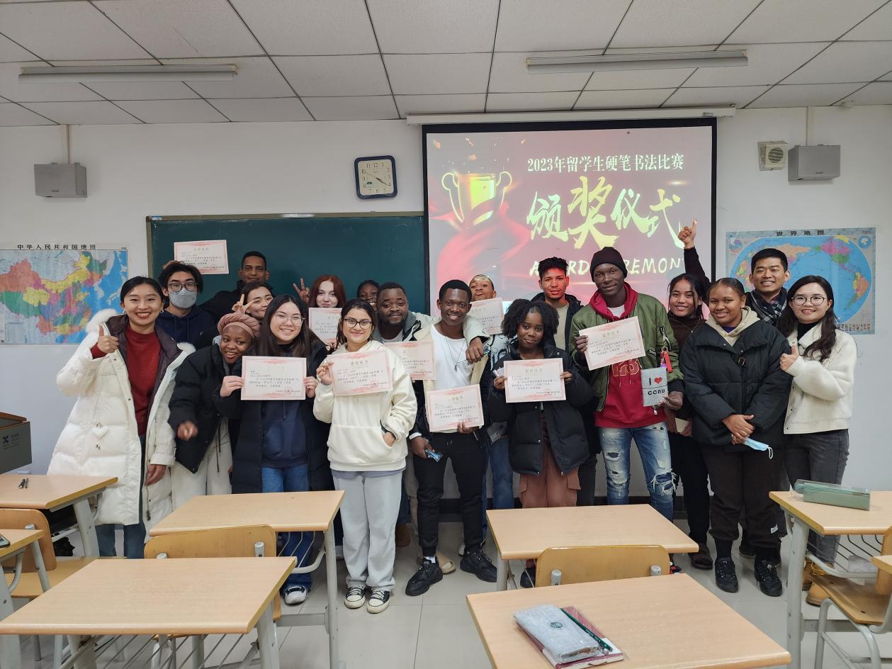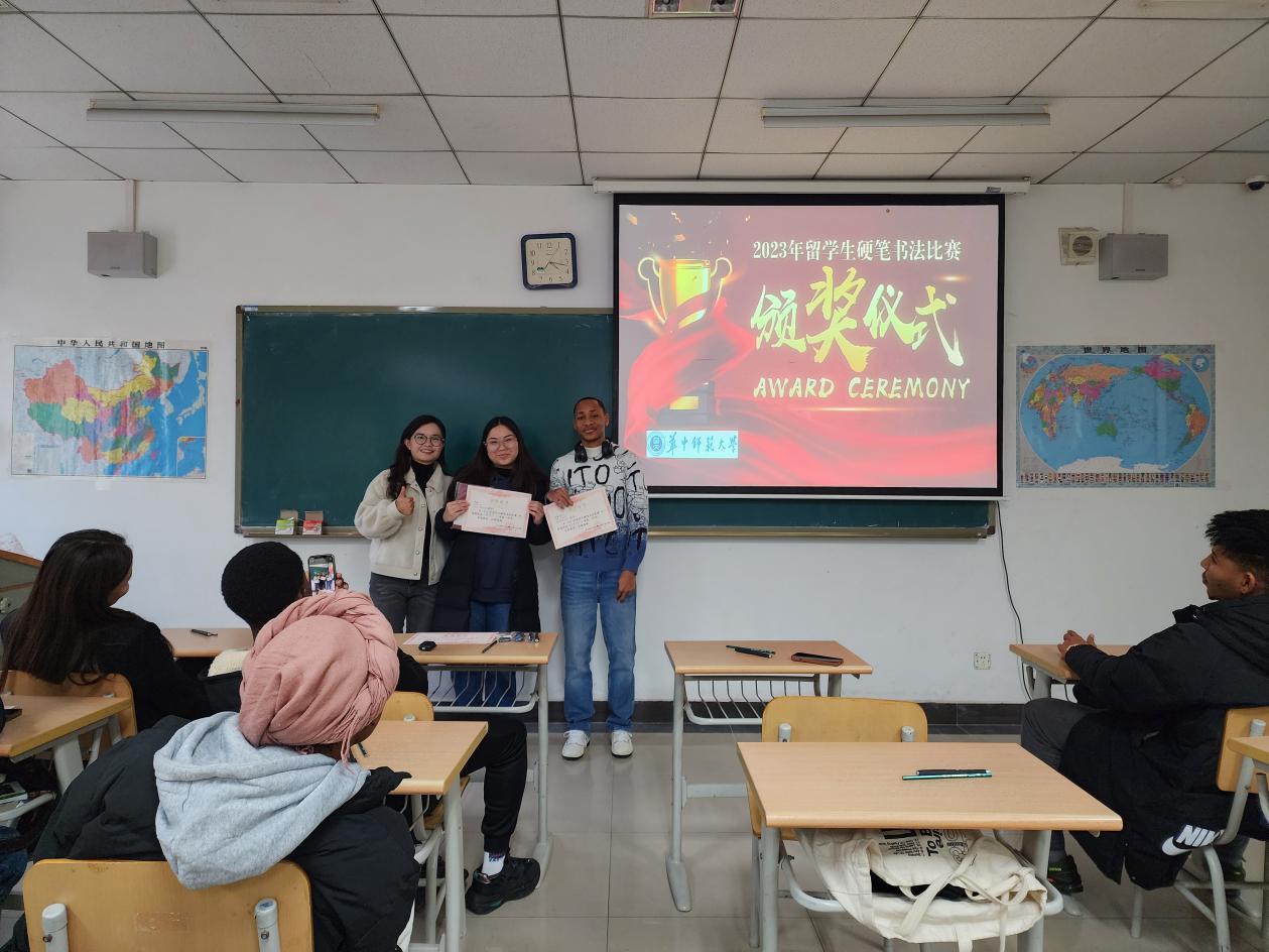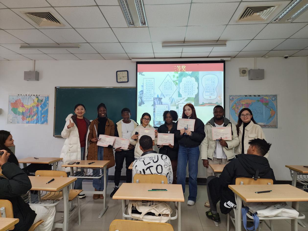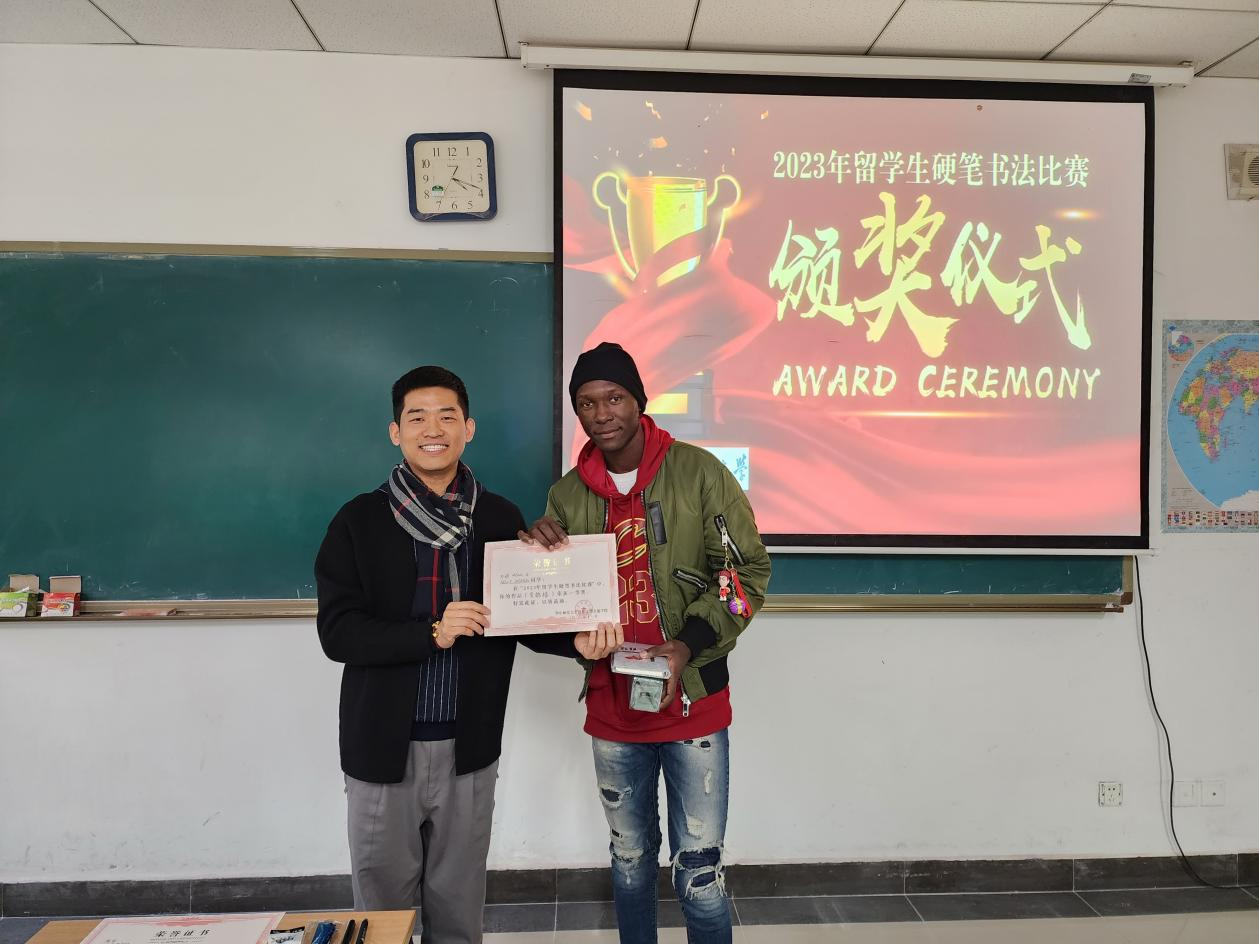 为鼓励留学生写好汉字、体验中国古诗词文化,我院于近日举办了“2023年留学生硬笔书法比赛”。大赛共收到了来自全体预科留学生的书法作品共64幅,有25幅入选优秀作品,字迹清秀整洁,让人赏心悦目。最终评出三等奖6名,二等奖4名,一等奖2名。学生工作办公室主任陈楠老师、丁昱丹老师和预科教研室主任韦薇老师出席了颁奖仪式。