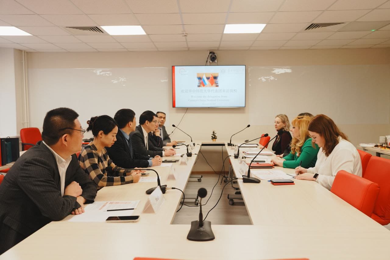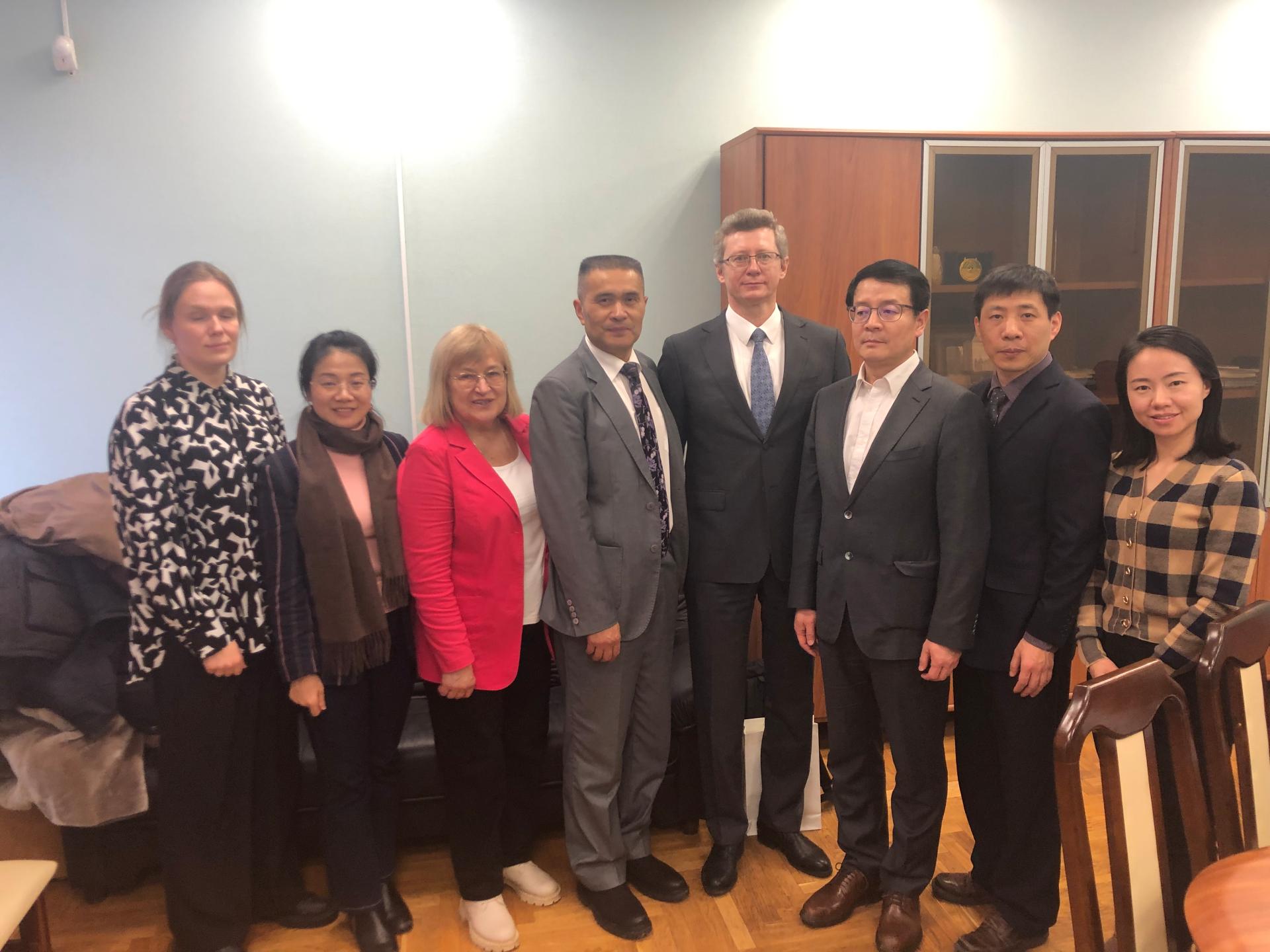 之后,一行人来到莫斯科金融法律大学并与校长扎别林·阿列克谢伊·格里戈里耶维奇、第一副校长阿列克·查别林以及莫斯科信息技术大学校长扎别莉娜·斯维特拉娜·阿列克谢耶夫娜进行了亲切友好的交谈。双方就教师交流、学生交换学习、科研合作和共建中文学校等方面全面深入交换了意见,达成一系列重要共识。
