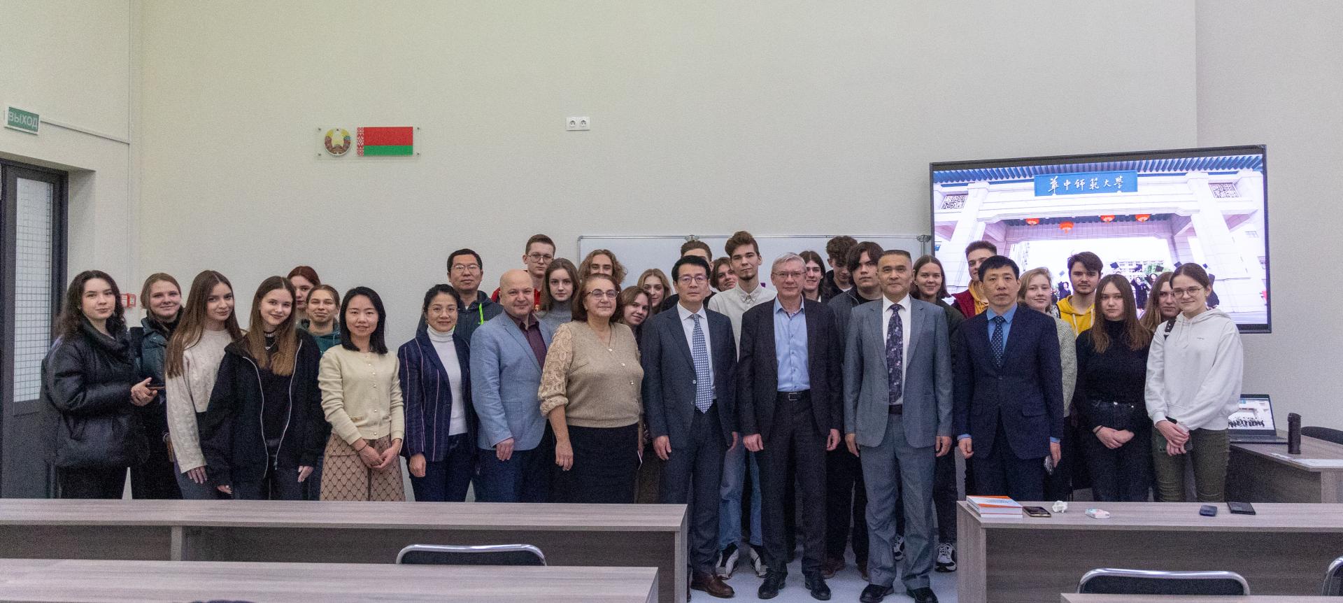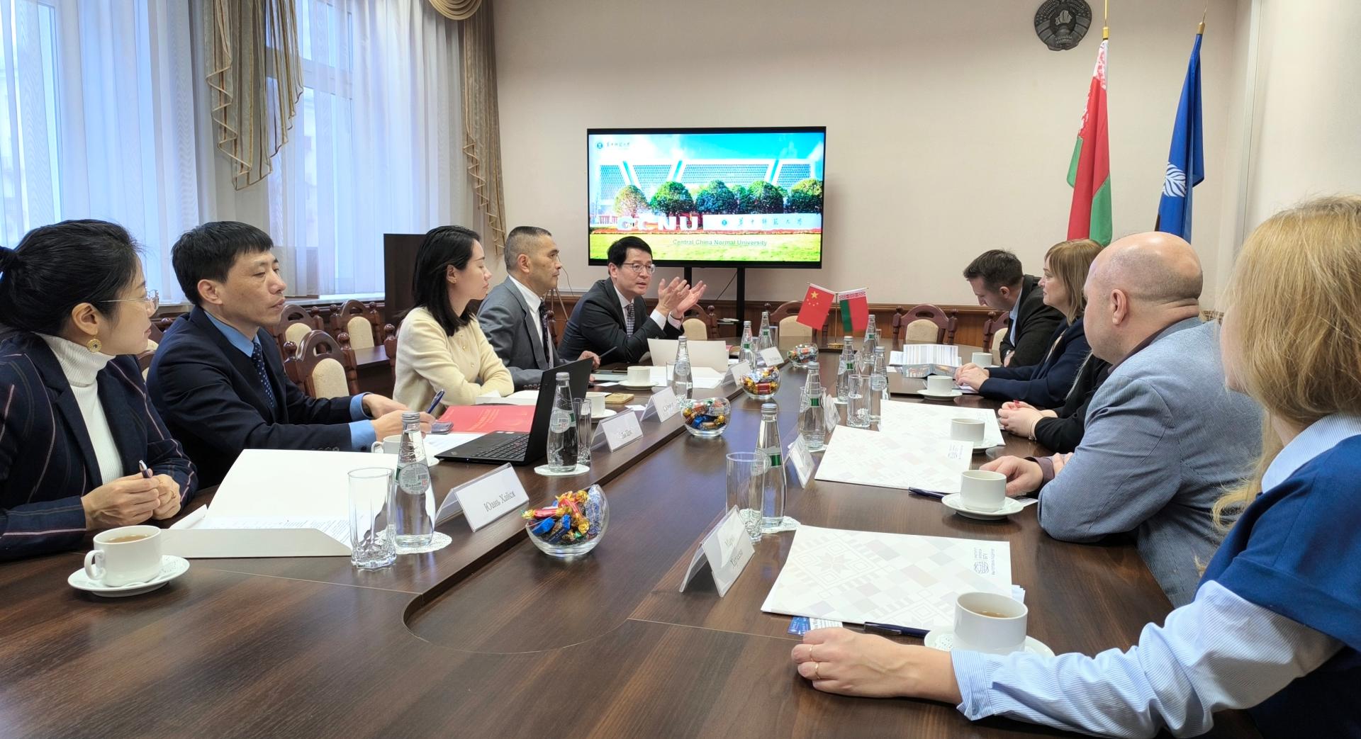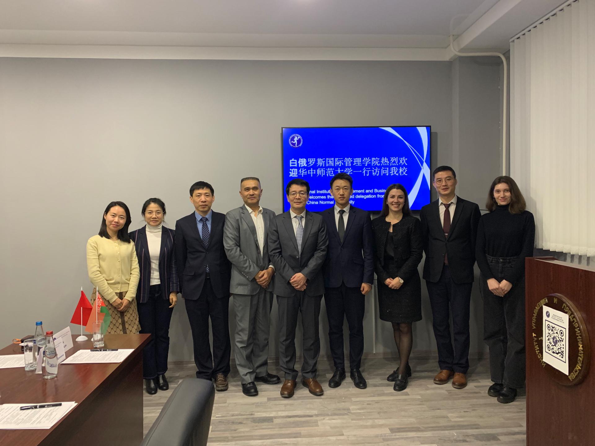 结束之后,一行人又来到了白俄罗斯国际管理学院,与白俄罗斯国际管理学院管理公司总经理韩文元、白俄罗斯国际管理学院学术副校长张鹏飞、国际处处长列娜深入探讨了教师交流、学生联合培养和中白工业园汉语培训班项目。