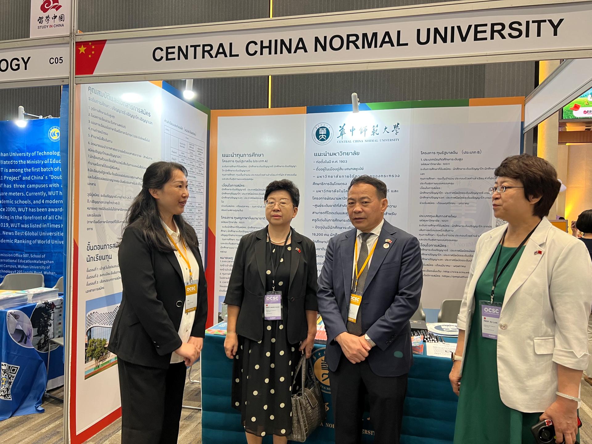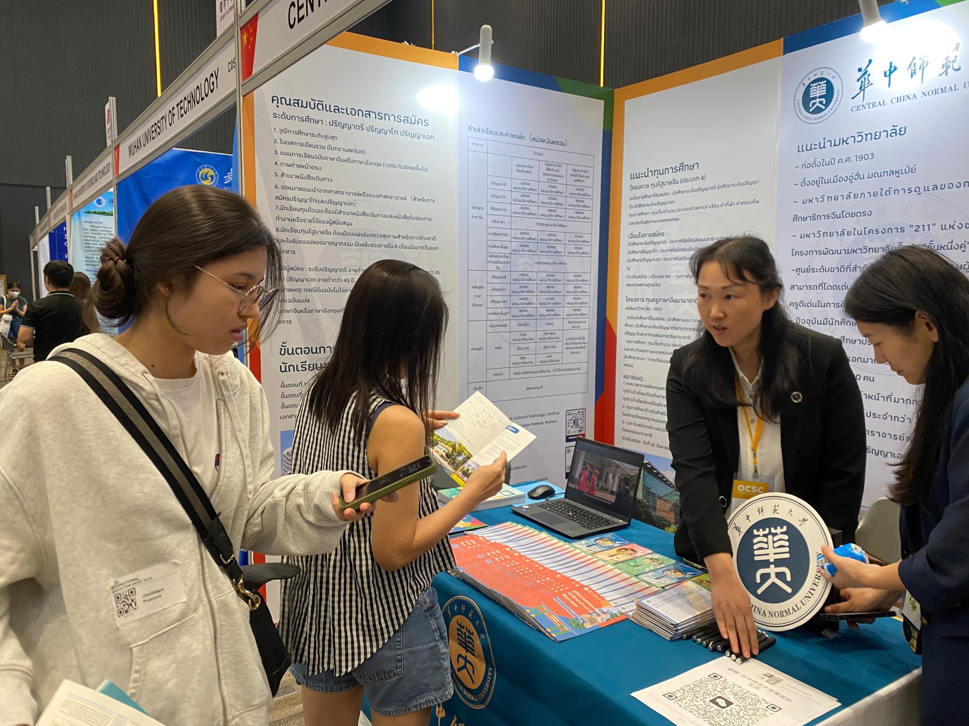 2024年10月25日至29日,受教育部国际合作与交流司委托,教育部(中国)留学服务中心组织“留学中国”教育代表团赴泰国曼谷参加2024年OCSC国际教育博览会。代表团由来自全国21家高等院校和科研机构组成。华中师范大学派出港澳台事务办公室副主任高洁和国际文化交流学院严莉两位老师参展,重点推介华中师范大学的来华留学及国际教育项目。