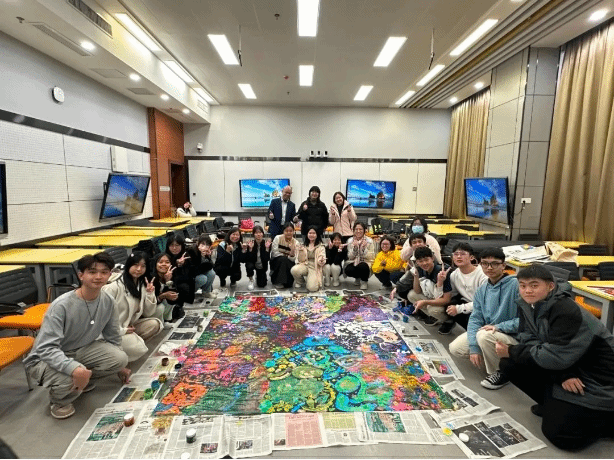 下午的活动中,南湖校区智慧教室的互动环节成为亮点。陆野老师通过汉语言教学案例展示了AI辅助课堂、虚拟仿真等技术应用。马来西亚学生踊跃参与AI语音评测、虚拟情景互动等环节,亲身体验中国智慧教育的创新实践,对人工智能辅助语言学习表现出浓厚兴趣。随后的绘画疗愈沙龙由心理健康咨询中心牟韵静老师带领,通过艺术表达促进情绪释放,学生们在小组创作中深化了对跨文化适应与心理调适的理解。