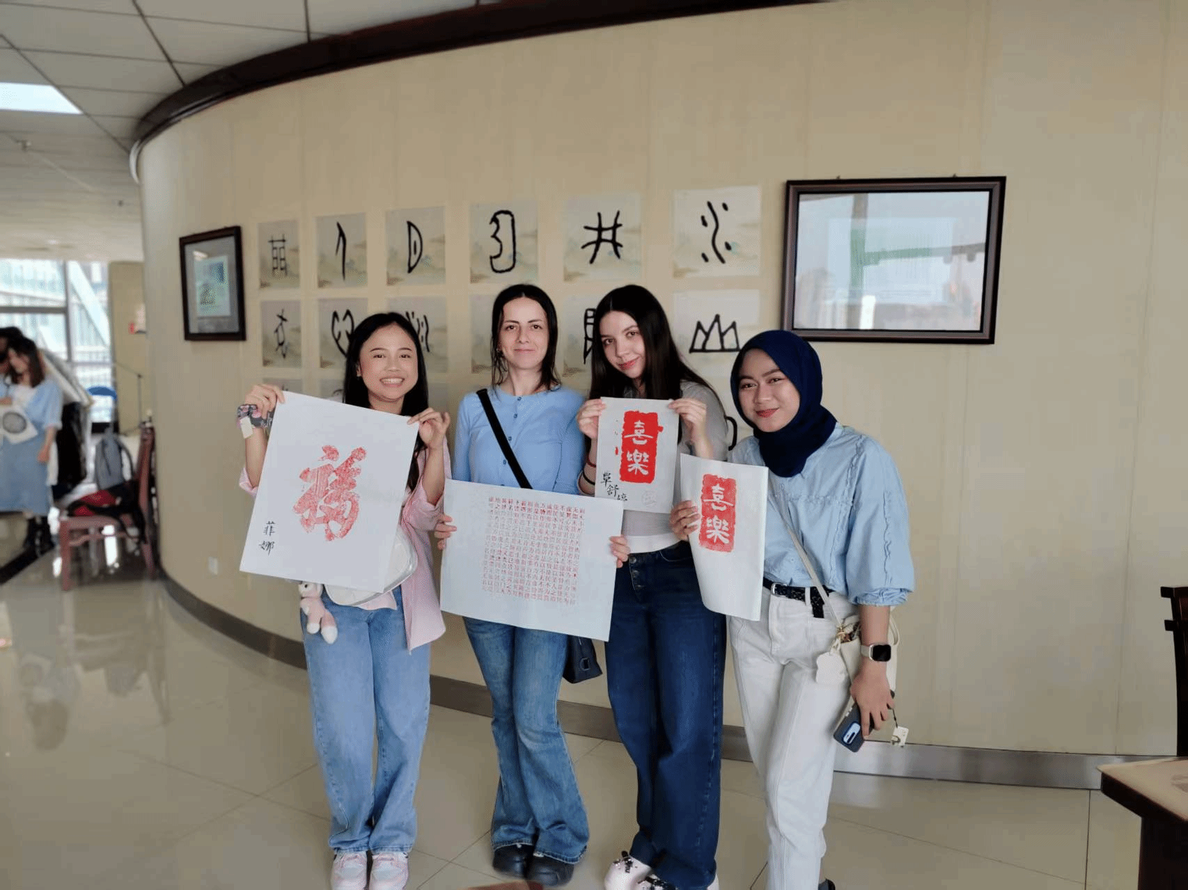 文字识别环节将活动氛围推向高潮。通过古今汉字对比,国际学生积极参与甲骨文与现代楷体的对应互动,现场气氛热烈非凡。每位参与者凭借在系列互动环节中的出色表现,收获了富有创意的文创礼物。