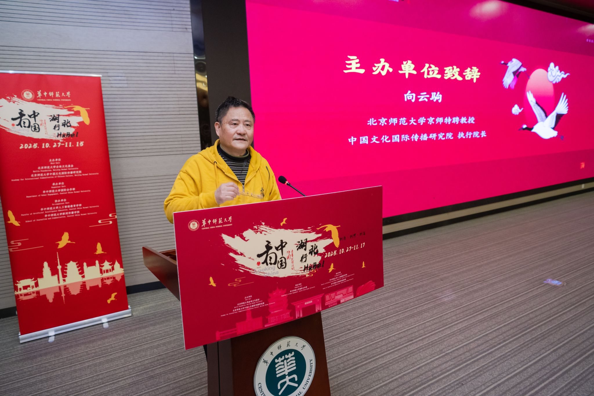 2025年11月17日,“2025看中国·外国青年影像计划·湖北行”闭幕式暨展映仪式在华中师范大学南湖综合楼一楼报告厅举行。本次活动由北京师范大学中国文化国际传播研究院、北京师范大学会林文化基金主办,我校国际合作部承办,人工智能教育学部、新闻传播学院协办,北京师范大学中国文化国际传播研究院执行院长向云驹、我校副校长刘宏达等出席本次活动。
