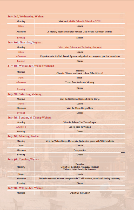 CCNU International Teenagers Badminton Summer Camp
