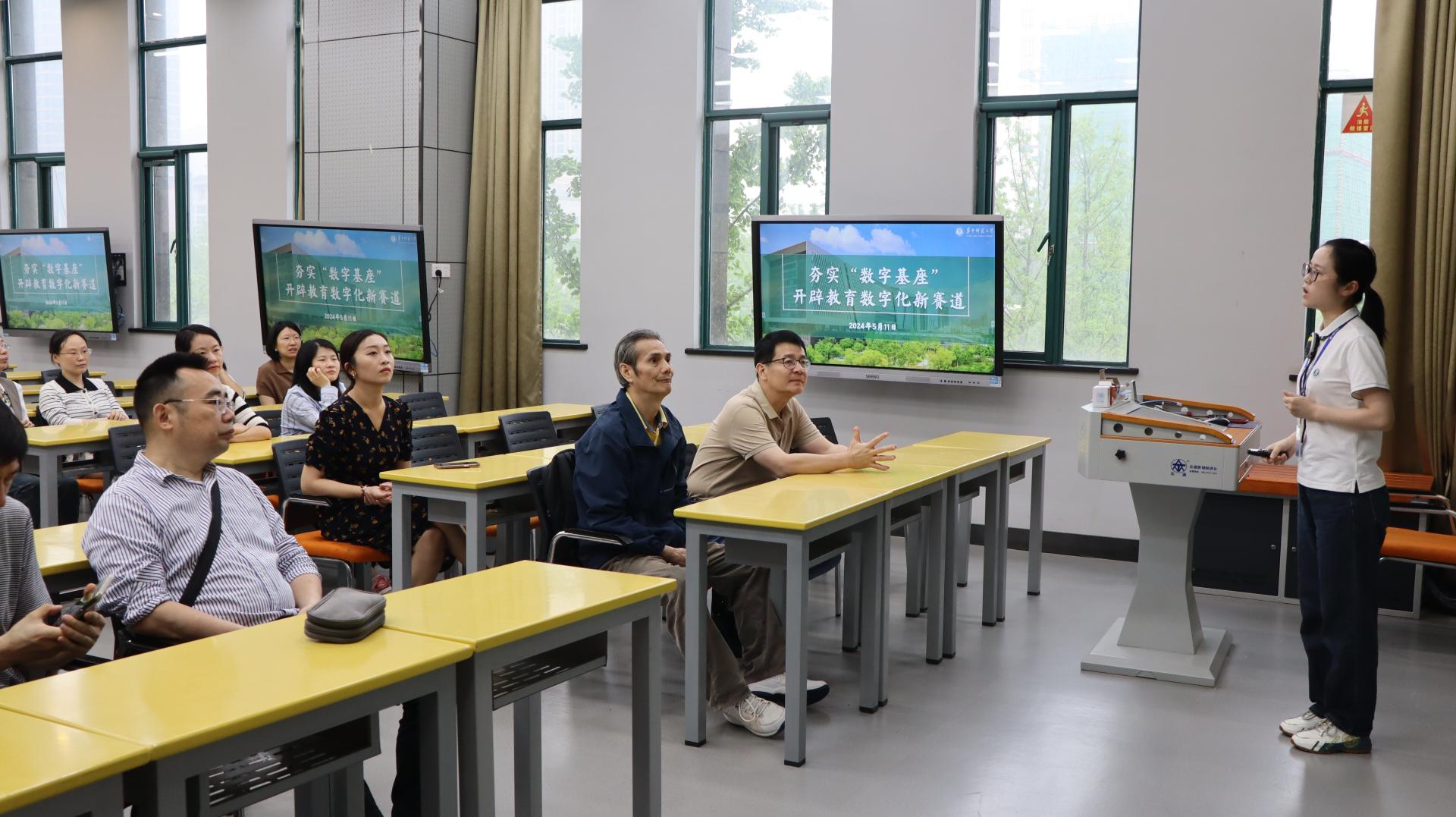 活动伊始,教师们参观了我校南湖综合大楼的智慧教室及国家数字化学习工程技术研究中心的展厅,全面了解了信息技术在助教、助学、助管等多个领域内的实际应用及其成效,切实感受到了现代信息技术对教育教学管理所产生的深远影响,及其在教育领域内的卓越潜力和价值。