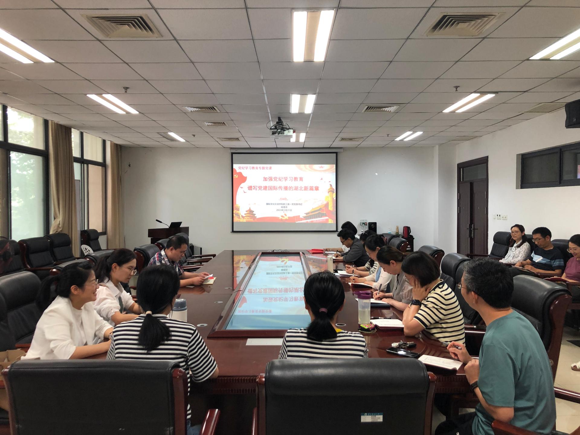 5月31日下午,教工第一党支部党员于310会议室开展了5月份主题党日活动,活动由支部书记杨理沛主持。杨理沛讲了题为《加强党纪学习教育 谱写党建国际传播的湖北新篇章》的党纪学习教育专题党课。与会党员表示,要坚持以习近平新时代中国特色社会主义思想为指导,以中华优秀传统文化和社会主义先进文化为力量根基,引导国际学生认识更真实、立体、全面的中国,推动国情教育开展。通过参与《中国共产党纪律处分条例》知识竞答,用测试检验学习成果,找不足,补短板,切实推动了《中国共产党纪律处分条例》学习入脑入心。