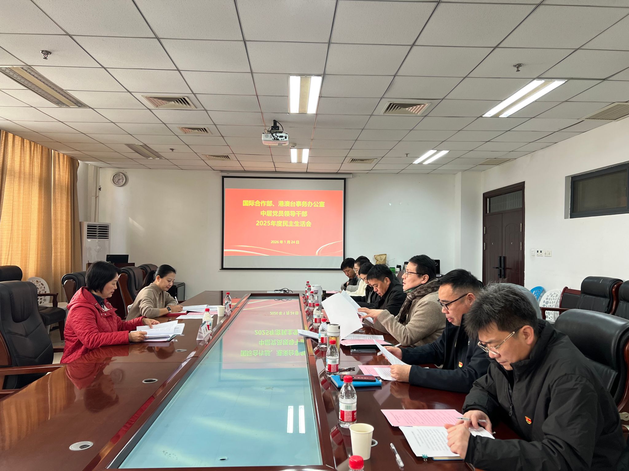 2026年1月24日下午,国际合作部、港澳台事务办公室中层党员领导干部民主生活会在310会议室召开,学校督导组组长、巡察办王琍主任到会指导,会议由党总支书记曹青林主持,督导组联络人、组织部蔡庆昱老师及领导班子成员参加会议。
