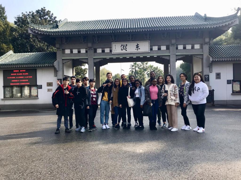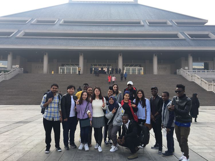 第一站,到达楚文化的汇集之地—湖北省博物馆。在博物馆门前的合照他们大家都兴奋不已,连拍照表情也无法同步啦!在这里,小编想问一句:是相机没有用了还是你们飘了呢?门口依旧有很多同样是参观博物馆的中国中小学生,他们对于我们同学们可是非常好奇呀!围着他们拍照,嘴里兴奋地叫道:快看,外国人!面对中国学生的热情,同学们也都热情的回应着!