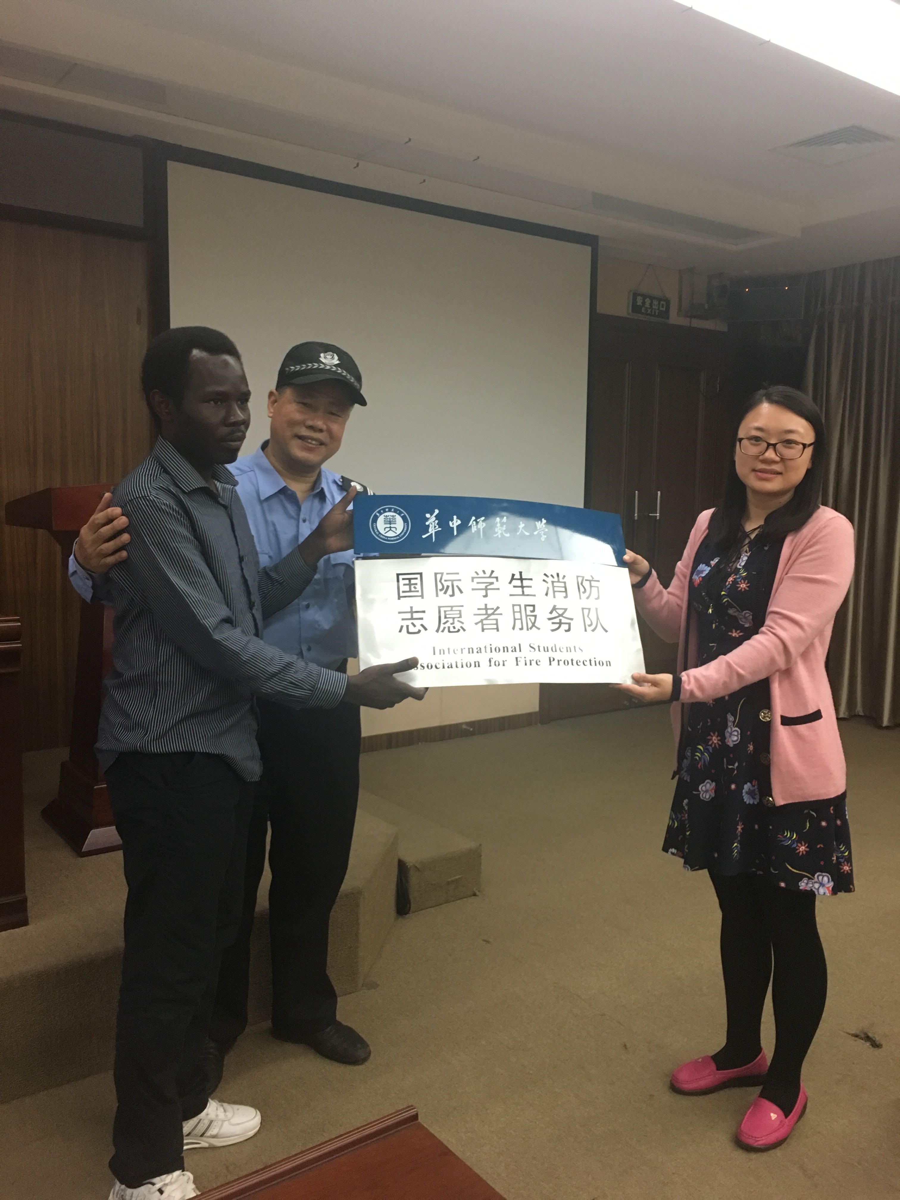 2017年5月5日,我院在国际逸夫会议中心一楼报告厅举行国际学生消防志愿者服务队成立仪式、消防理论知识讲座,并在留学生宿舍楼前举行消防演习活动。参与此次活动的有我院徐君老师、陈瑾老师、深华物业公司全体员工以及国际学生消防志愿服务队10位成员。