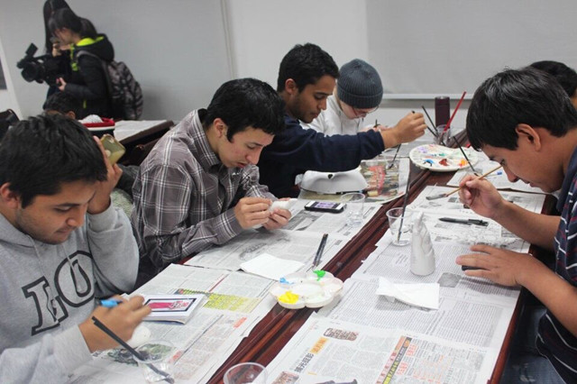 本次讲座还邀请了几位专业脸谱制作老师给留学生做指导。简单互动之后,脸谱教学正式开始。在老师的指导和学生的共同努力下,一张张脸谱顺利完成了,或漂亮,或奇妙,或夸张,形态各异。现场老师和学生友好的交流,气氛融洽。一位来自德国的留学生说道:“我非常喜欢京剧,我以前也接触过,不过这是我第一次制作脸谱,我非常喜欢,没什么比这更棒的了。”
