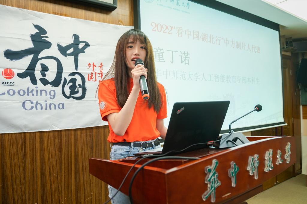 导演代表、塞内加尔籍博士研究生郭飞龙(AMAR CHEIKH MBACKE)表示“看中国·湖北行”只是他向世界介绍中国的第一步,以后自己将继续努力,与其他外方导演一同做中国文化的传播使者。制片代表、人工智能学部本科生童丁诺用沟通、理解和成长三个关键词分享了她的湖北行记忆,希望中国青年珍视中华文化,借着青春的旋律,把中华文化传向世界的每个角落。纪录片组代表、新闻传播学院本科生覃育婧说,希望拍摄的纪录片能将文化开放与文化自信并存的中外文化交流之美,以“快乐”基调真实呈现在世人面前。