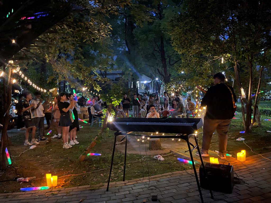 5月6日晚,“Spring Concert”春日户外音乐会在国际园区如期举办。萨摩亚籍学生涂优异、方思思,刚果(金)籍学生迪亚,菲律宾籍学生吴安平、老挝籍学生祝名、中国籍学生郭宁等10余名学生依次演唱各国经典歌曲。国际文化交流学院(留学生管理工作办公室)孙焱副院长(副主任),学生事务办公室陈楠、丁昱丹、徐亮老师以及教学办公室游梦佳老师同现场中外学生一起聆听悠扬的旋律。