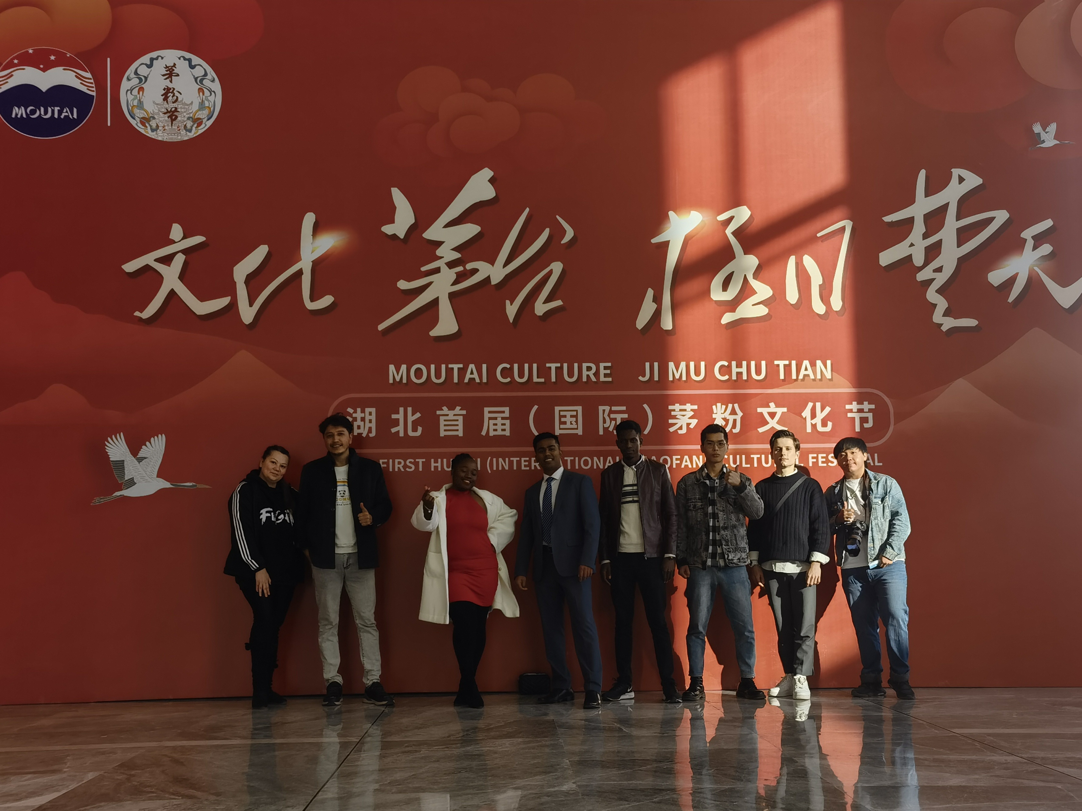 12月1日,受湖北国酒贸易有限公司邀请,我校来自安提瓜和巴布达、巴基斯坦、俄罗斯、老挝、孟加拉国、冈比亚等国家的7名国际学生参加了“文化茅台·极目楚天”湖北首届(国际)茅粉文化节,感知中国酒文化。国际文化交流学院(留学生管理工作办公室)罗剑、徐亮两位老师带队参加本次活动。