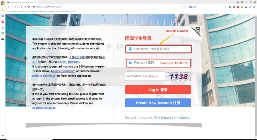 为了方便工作以及高效率的处理办公室日常事务,例如:日常通知发送,国际学生毕业和离校申请,课外活动的注册,查看文档进度(中文课程成绩单),签证或护照过期提醒,以及学费的支付(对于自费学生)等其他事务,我们将国际学生在华管理系统进行了全面。从现在开始,上述业务可通过访问以下平台https://ccnu.at0086.cn/student进行查看和解决。每个学生都有自己的账号,可以使用护照号作为用户名登录,初始密码为12345678。登录后,必须修改密码。