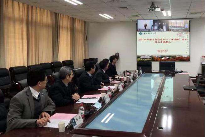 11月13日,由教育部中外语言交流合作中心主办、华中师范大学承办的“汉语桥”印尼线上团组交流项目“印象中国-英雄武汉”开班典礼顺利举行。副校长彭双阶、国际交流与合作处处长洪峰、国际文化交流学院院长高卓献、副院长孙焱、左双菊;印尼泗水国立大学副校长Bambang Yulianto、语言与艺术学院副院长Syafiul Anam、中文系主任李安、印尼泗水国立大学孔子学院中方院长肖任飞以及100余位印尼学员在线出席。孙焱主持开班典礼。