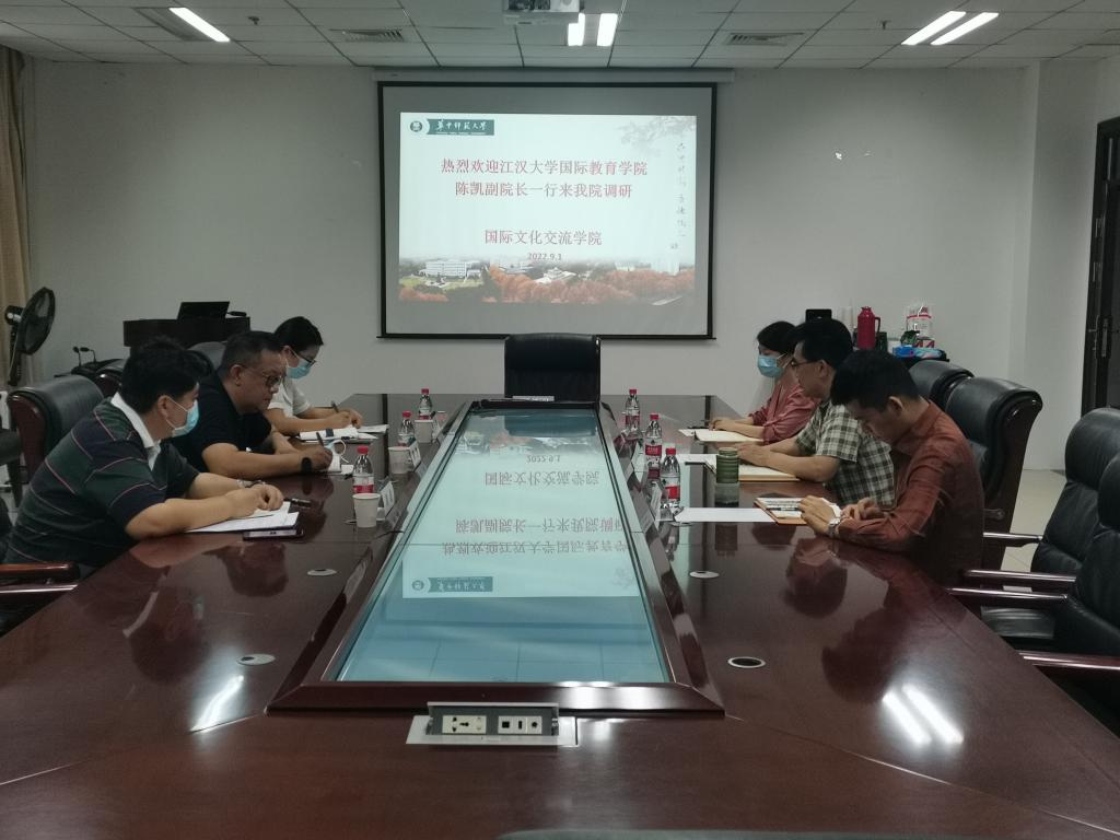 9月1日上午,江汉大学国际教育学院陈凯副院长一行来访,双方在310会议室举行交流座谈。我院孙焱副院长、学生事务办公室陈楠主任、教学管理办公室方荣杰老师参加座谈。