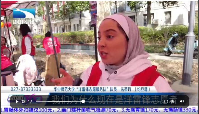 湖北广播电视台、武汉广播电视台相继报道了“洋雷锋”志愿服务队的公益献血活动,志愿服务队队员法蒂玛在采访中表示,雷锋是他们学习的榜样;