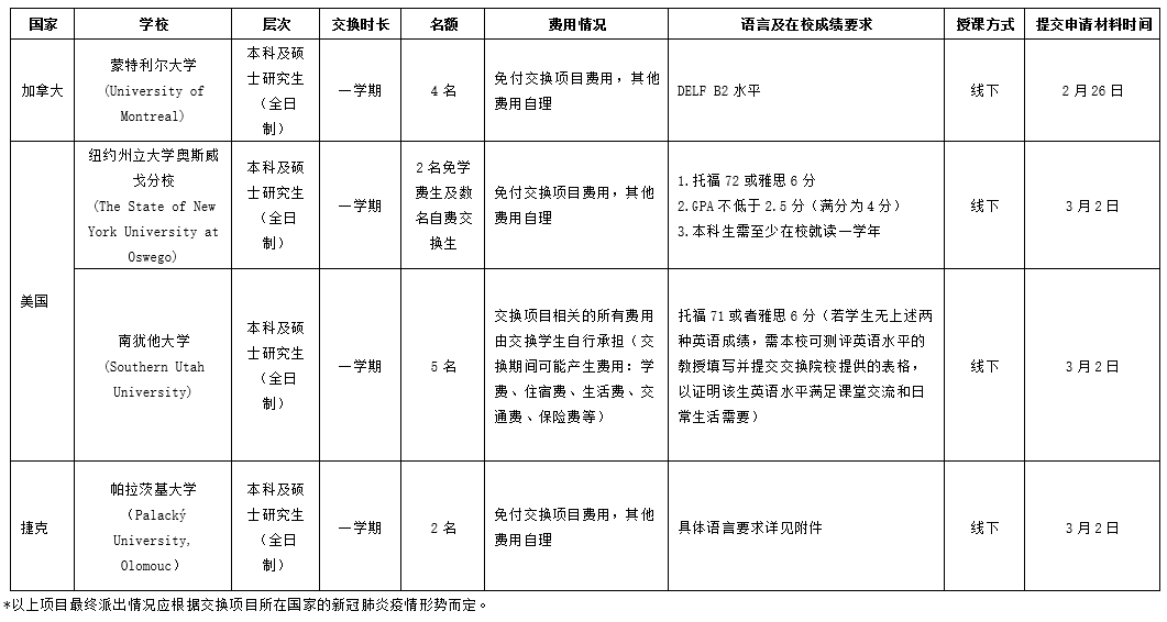 根据我校与海外合作院校之间签署的学生交换(交流)合作协议以及国际交流项目计划,2023年我校拟继续遴选在校优秀学生于秋季学期赴海外学习交流。现将相关申请事项通知如下: