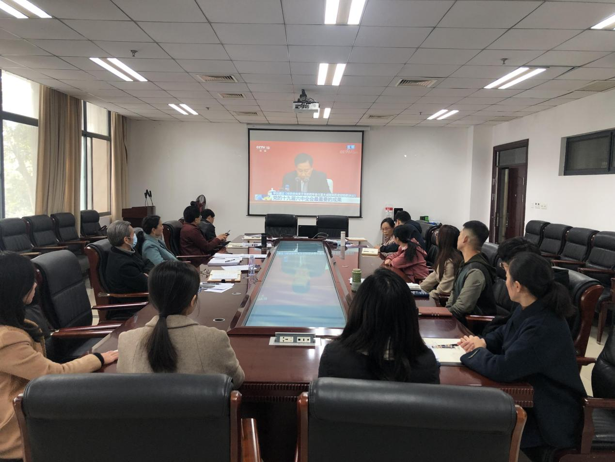 上午10时,中心组成员及学院党员群众代表集体收看中共中央举行的党的十九届六中全会精神新闻发布会。