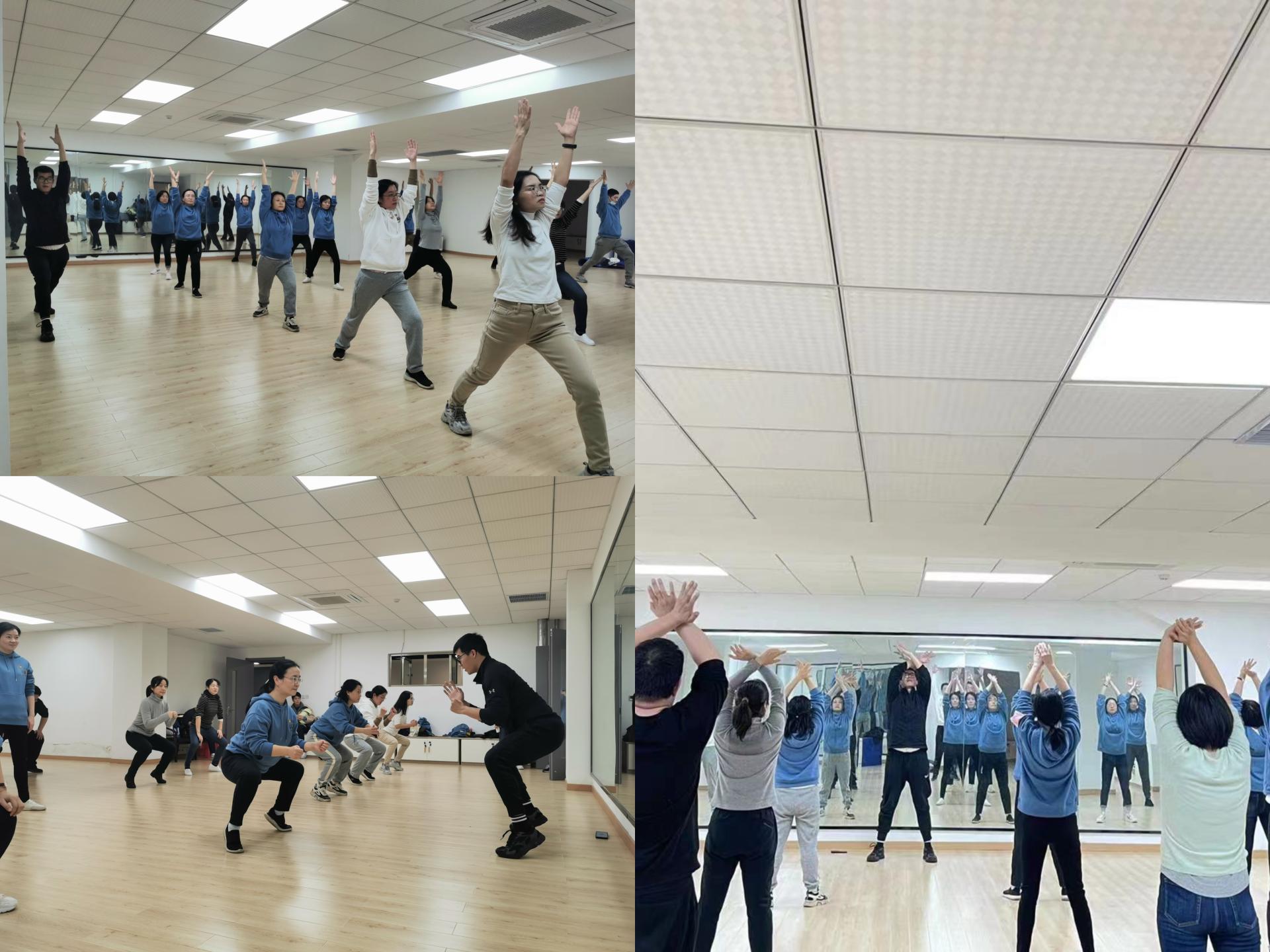 丁凡教练教授了一套居家健身操,包括运动前热身、专项身体技能训练、运动后拉伸。教练带头,全体党员积极投入训练,一遍编练习,最终完整地掌握了健身操的所有动作要领,尽显教工一支部党员的运动风采。