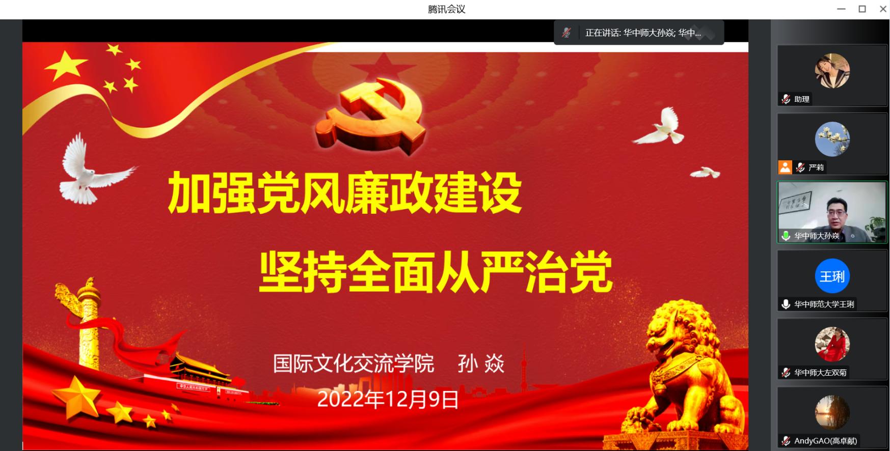 12月9日下午,国际文化交流学院通过腾讯会议召开2022年第11次教职工大会。学院全体教职工线上参会,会议由学院党总支书记王琍主持。